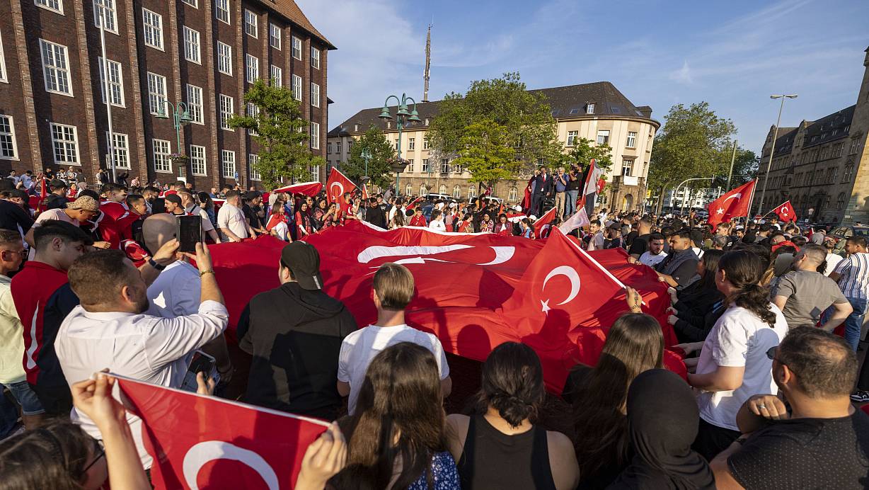 Duisburg/Dortmund (dpa). Nach dem Erfolg von Recep Tayyip Erdogan bei der Präsidentenwahl in der Türkei haben Tausende Anhänger in Nordrhein-Westfalen lautstark seinen Sieg gefeiert. In vielen Städten gab es am Sonntagabend Autokorsos, Menschen feierten auf Straßen und Plätzen, der Verkehr in den Innenstädten kam teilweise zum Erliegen. Die Polizei war mit starken Kräften im Einsatz. Unter anderem in Dortmund kam es zu Auseinandersetzungen zwischen Erdogan-Anhängern und Einsatzkräften.