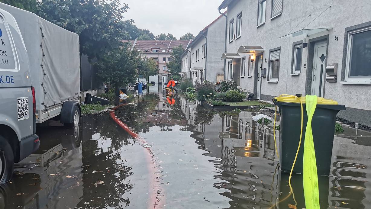 Die Feuerwehr in Essen war in der Nacht mit allen Kräften unterwegs, um rund 90 unwetterbedingte Einsätze zu bewältigen, sagte ein Sprecher. Dort stand unter anderem in einem Wohngebiet das Wasser bis zu einem Meter hoch. Betroffen waren etwa zehn Wohnhäuser. Die Feuerwehr rückte mit einer Hochleistungspumpe an, die bis zu 6.000 Liter Wasser pro Minute abpumpen könne. Auch andernorts seien Keller und Souterrain-Wohnungen teilweise bis zur Zimmerdecke vollgelaufen. Gullydeckel hielten dem Wasserdruck in der Kanalisation nicht stand und seien „regelrecht aus der Straßendecke katapultiert“ worden, wie die Feuerwehr mitteilte.