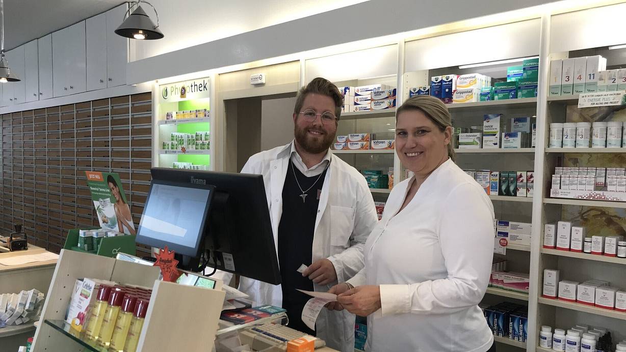 Claudia Scherrer, Inhaberin der Linden-Apotheke in Gütersloh, und ihr Praktikant Frederic Kalenfeld scheitern immer häufiger daran, dass viele Medikamente nicht mehr verfügbar sind. | © Anneke Quasdorf