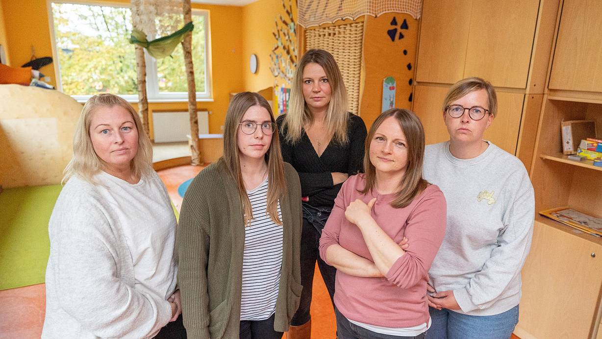 Wütend und verzweifelt: Die Erzieherinnen Tanja Neufeld und Kim Uhlig, Elternratsvorsitzende Carina Gerling, Magdalena Ornatek und Friederike Ornatek-Böger (v.l.). | © Oliver Krato