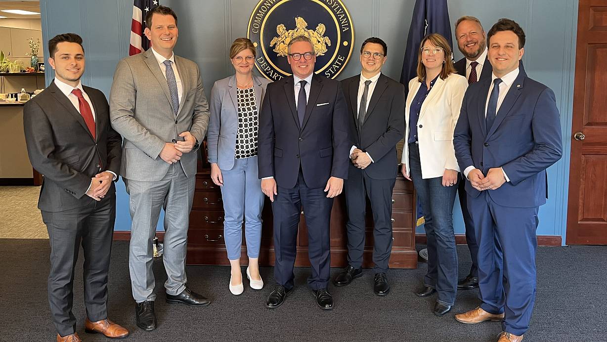 Die NRW-Delegation bei einem Treffen mit Pennsylvanias Secretary of the Commonwealth Al Schmidt. | © SPD