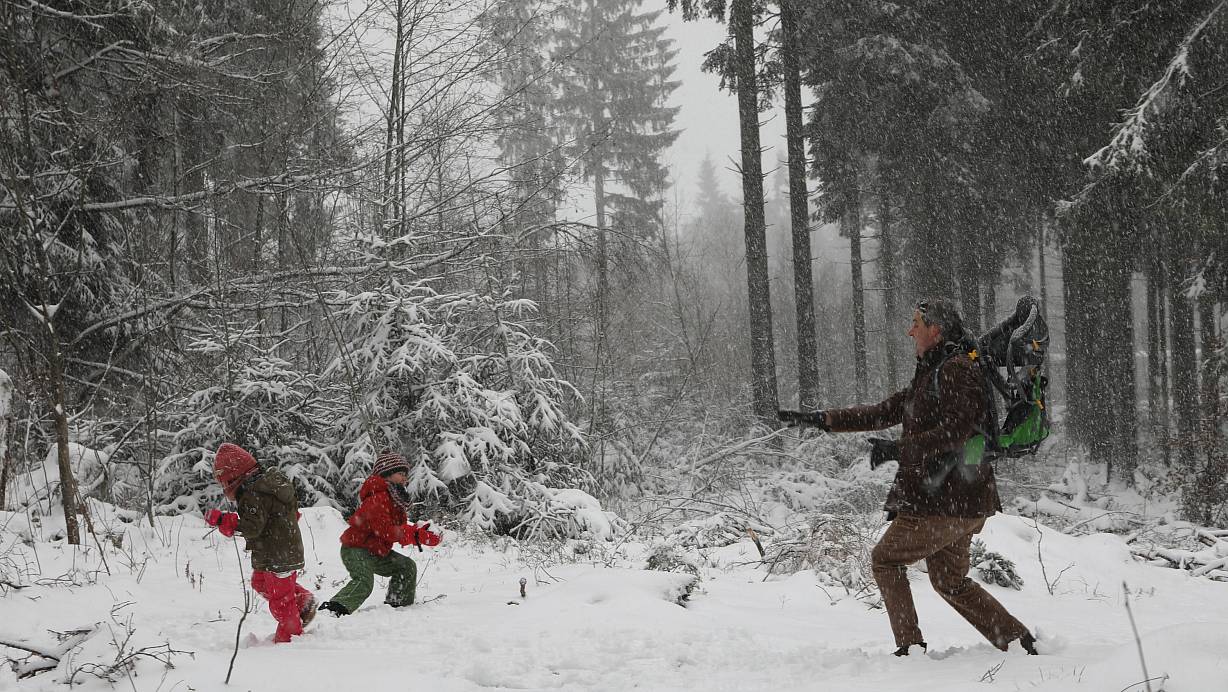 Viele Menschen waren nicht unterwegs: Vereinzelt stapften Spaziergänger die schneebedeckten Wiesen und Wege entlang, Familien amüsierten sich bei Schneeballschlachten, oder sie bauten Schneemänner. Auch Schlittenfahrer waren unterwegs. Allzu tief war der Schnee zwar noch nicht, aber für manche Schlitten reichte es.