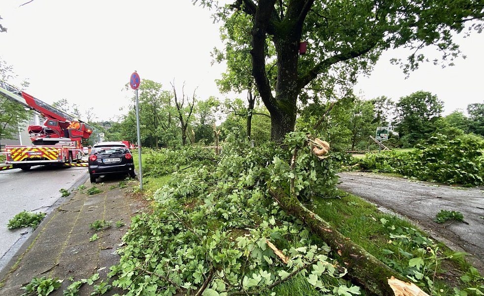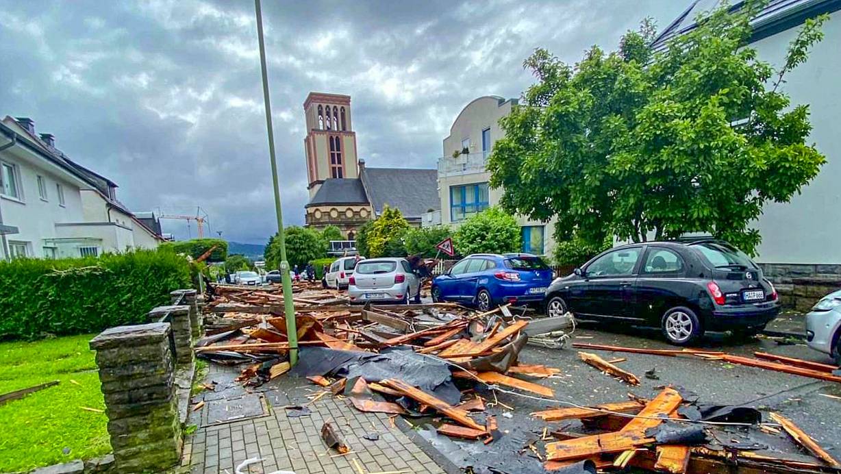 Wie die Zeitung online weiter berichtet, hatte am Mittwochnachmittag Starkwind innerhalb kurzer Zeit für enorme Schäden gesorgt. Demnach sei das Dach eines Kirchturms abgedeckt worden, zudem wurden Häuserdächer und Autos beschädigt sowie Bäume umgerissen.
