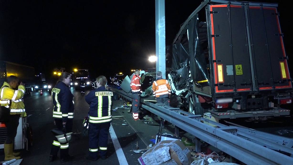 Um kurz nach 1 Uhr in der Nacht rammte der Lastwagen den Betonpfeiler einer Schilderbrücke bei Auetal, der zwischen den Mittelschutzplanken aufragte. Wie es zu dem Unfall gekommen war, blieb zunächst unklar. Die Polizei sucht nach Zeugen.