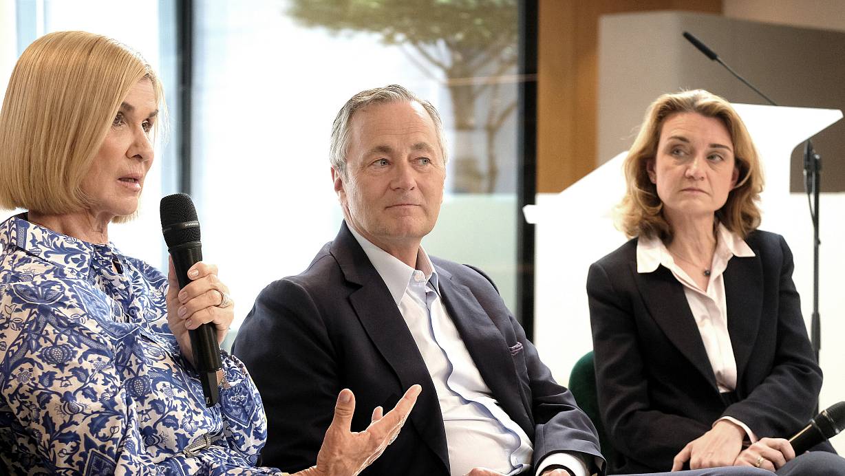 Brigitte Mohn (von links), Hannes Ametsreiter und Daniela Schwarzer von der Güterloher Bertelsmann Stiftung haben verschiedene Vorschläge, wie die Demokratie in Deutschland sicherer werden kann. | © Andreas Frücht