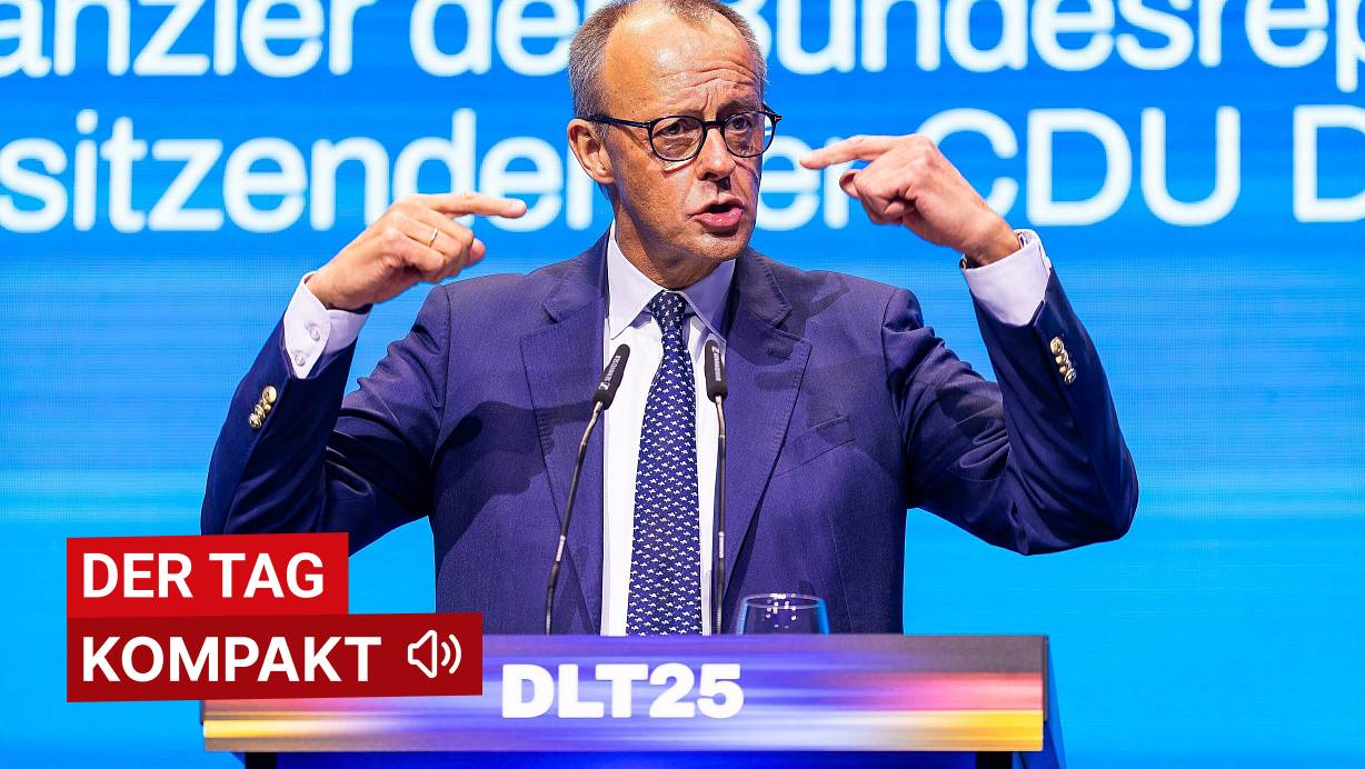 Bundeskanzler Friedrich Merz (CDU) spricht beim Deutschlandtag der Jungen Union (JU). Für seine Zuhörer hat er keine guten Nachrichten. | © Neue Westfälische