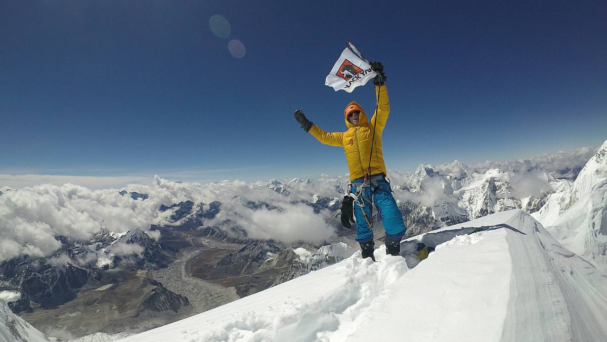 Jost Kobusch auf dem Gipfel des Nangpai Gosum im Himalaja, den er 2017 bestiegen hat. | © picture alliance / Jost Kobusch/Jost Kobusch/dpa
