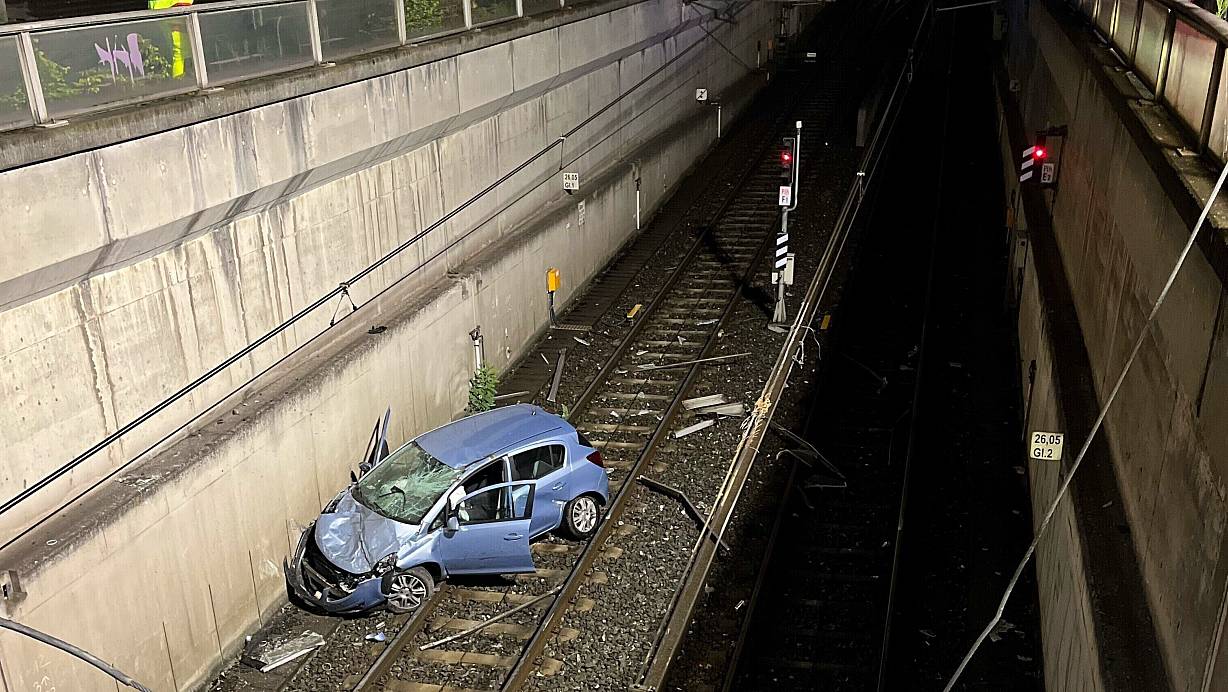Duisburg (dpa). Ein Opel Corsa ist in Duisburg in der Nacht zu Montag rund fünfeinhalb Meter tief in einen U-Bahn-Schacht gestürzt. Nach bisherigem Ermittlungsstand war der Wagen zuvor von der Fahrbahn abgekommen, überfuhr eine Verkehrsinsel samt Begrünung, durchbrach ein Sicherheitsgeländer und landete schließlich auf den Gleisen. Das teilt die Polizei mit.