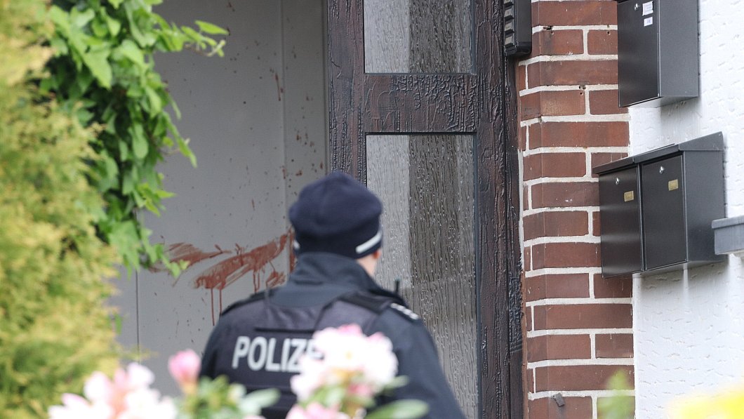 Die Polizei trifft gegen 5.30 Uhr am Tatort in Spenge ein. Vor dem Hauseingang ziehen sich Blutspuren bis zur Straße. Im Hausflur liegt Malte P., reglos, leblos. Er hatte keinerlei Chance.