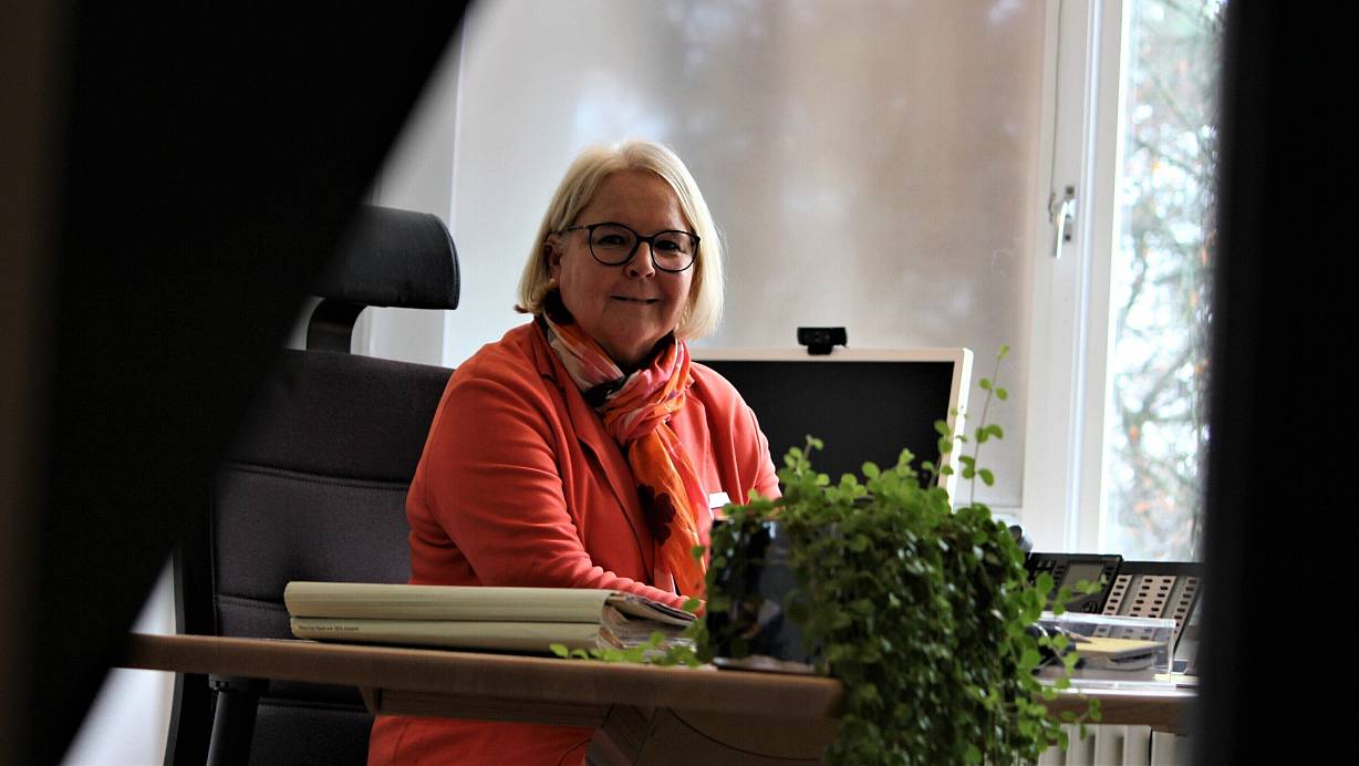 Kerstin Höltkemeyer-Schwick an ihrem Schreibtisch in der JVA Bielefeld-Senne. Normalerweise stapeln sich hier Akten. Wegen ihres anstehenden Ruhestands hat sie bereits angefangen, aufzuräumen. | © Lukas Brekenkamp