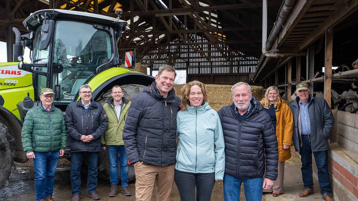Sie machen es vor: Cord und Miriam Peitsmeyer und ihr Vater Ernst Flömer öffnen regelmäßig die Türen ihres Betriebs. Hubertus Beringmeier, Antonius Tillmann, Andreas Westermeyer, Beatrice Gievers und Joachim Schmedt begrüßen das. | © David Scholtissek