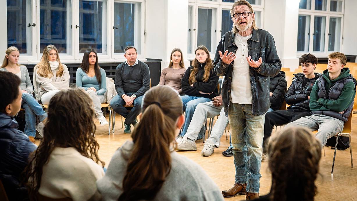 Redakteur Carsten Heil diskutiert mit 34 Schülern des Bielefelder Helmholtz-Gymnasiums über Krieg und Frieden, Gesellschaftsdienst, Wehrdienst und Abschreckung. | © Barbara Franke