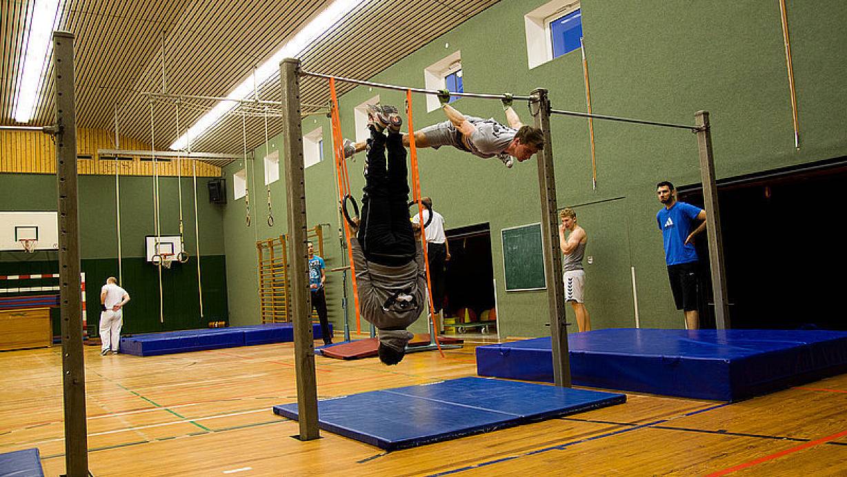 Inspiriert von amerikanischen Körperakrobaten, die nur mit dem eigenen Gewicht und nur draußen trainierten, verließen die beiden Pioniere ihre "Muckibude" und landeten auf einem Spielplatz in Vilsendorf. Klimmzüge an Turnstangen, Handstand im Sand. "Unsere ersten Übungen waren eher ulkig als zielführend", berichtet Mellmann.