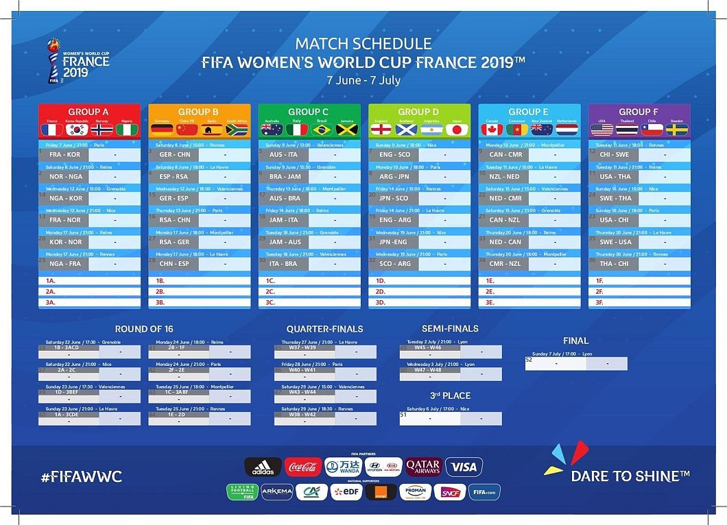 24 Teams treten bei dem Turnier vom 7. Juni bis 7. Juli 2019 an. Bundestrainerin Martina Voss-Tecklenburg und die deutschen Fußball-Frauen treffen in der Vorrunde auf China, Spanien und Südafrika.