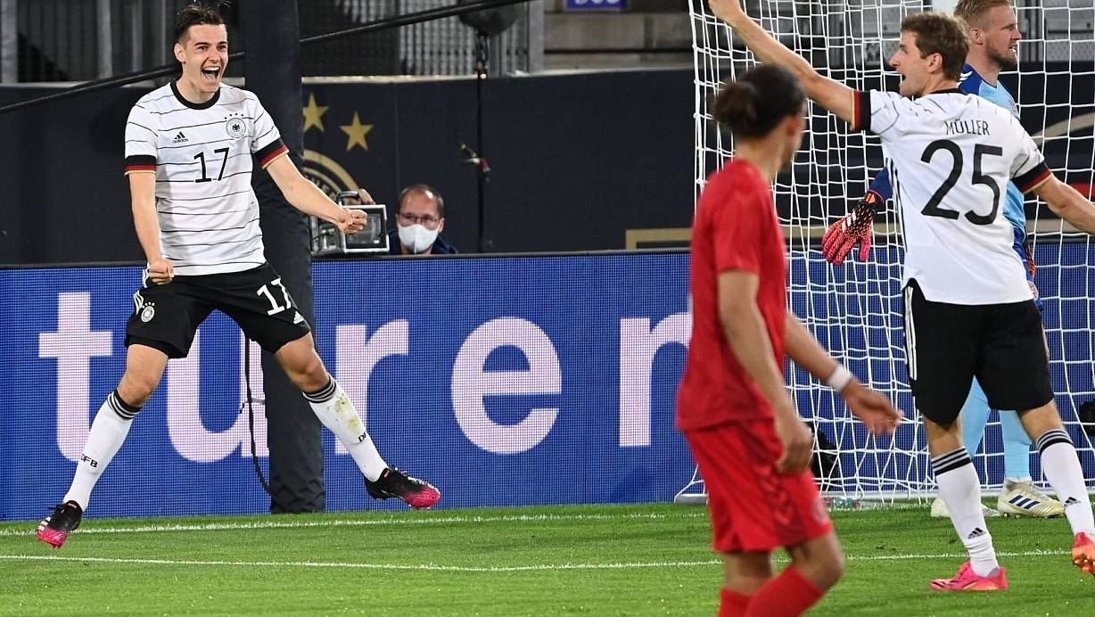 Es fehlte nur das Führungstor, das unmittelbar nach der Pause Neuhaus beisteuerte. Der Gladbacher belohnte sich für einen engagierten Auftritt. Die deutsche Mannschaft zog sich danach etwas zurück und überließ dem Gegner die Initiative, Löw wechselte zum ersten Mal. Spielqualität und Intensität ließen nach, Dänemark wurde stärker und traf mit der ersten Torchance. Danach scheiterte auch Kimmich noch an der Querlatte (77.).