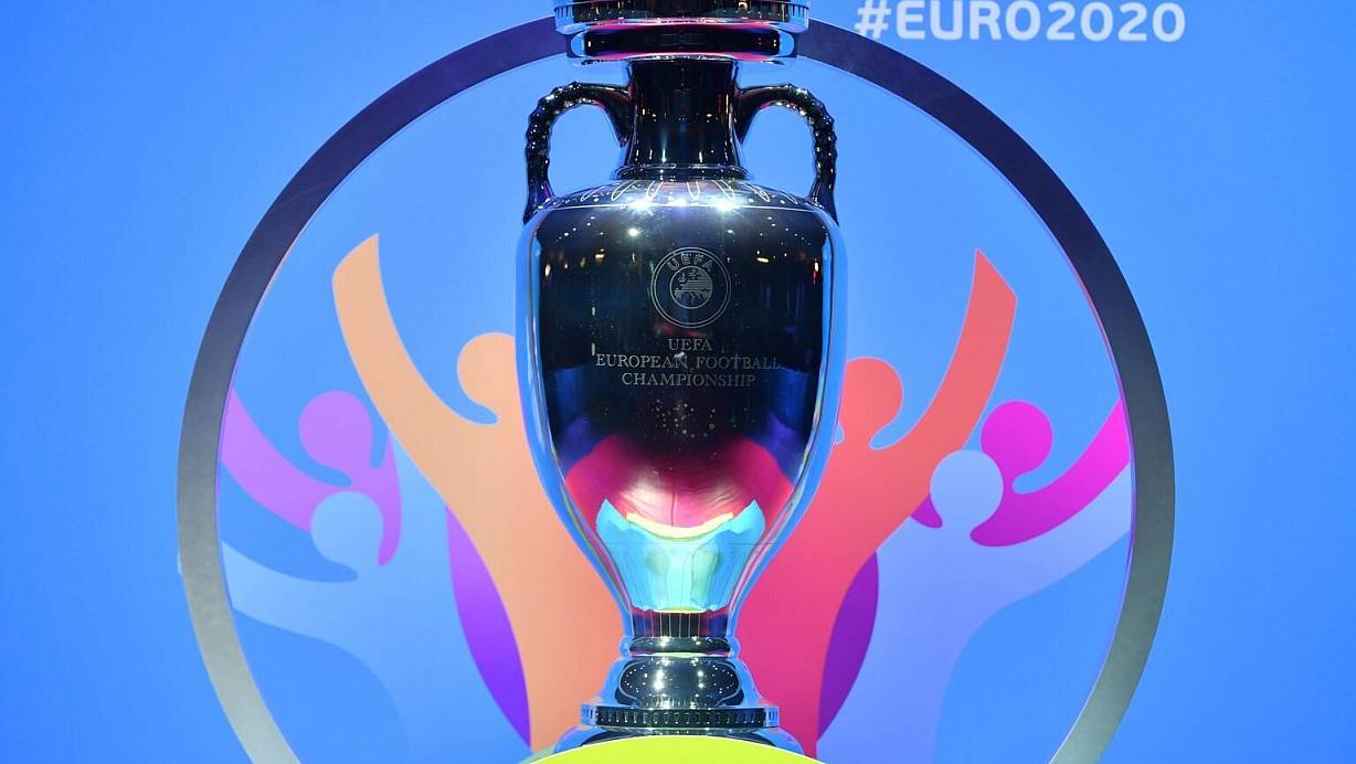 Der EM-Pokal steht auf einem Podest. | © Foto: Harold Cunningham/UEFA via Getty Images/dpa