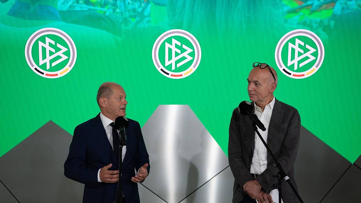 Verbandspräsident Bernd Neuendorf kündigte eine Debatte im Deutschen Fußball-Bund über die Angleichung der Prämien an. «Ich bin zumindest bereit, in unseren Gremien mit den Vertretern und Vertreterinnen der A-Nationalmannschaften darüber zu reden, ob unser über Jahrzehnte gewachsenes Prämiensystem noch zeitgemäß ist (...) und es gegebenenfalls auch angepasst werden kann», sagte Neuendorf nach der Gesprächsrunde mit Scholz, DFB-Geschäftsführer Oliver Bierhoff sowie Vizepräsidentin Celia Sasic.