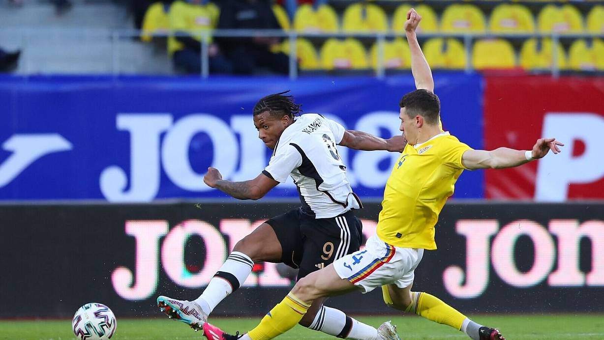 Deutschland dominierte die Partie und hatte mehr Ballbesitz, Rumänien schaltete schnell um und lauerte auf Konter. Stürmer Jessic Ngankam von Hertha BSC hatte vier Tage nach seinem viel gelobten Debüt beim 2:2 gegen Japan die erste Chance der Partie. Sein Schuss aus rund 15 Metern war kein Problem für den rumänischen Keeper (11.). Der Versuch von Kapitän Yannik Keitel von der Strafraumkante wurde geblockt (23.).