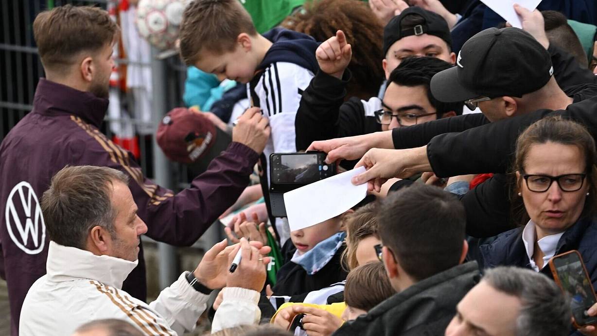 Nach dem frühen WM-Ausscheiden Anfang Dezember in Katar waren öffentliche Trainingseinheiten gefordert worden, um die kritisierte Distanz zwischen Nationalteam und Fans wieder zu verringern. Vor dem Jahresauftakt im März hatte Flick eine Trainingseinheit im Frankfurter Stadion am Brentanobad vor mehreren tausend Zuschauern abgehalten. DFB-Sportdirektor Rudi Völler unterhielt die Fans per Mikrofon-Durchsagen.
