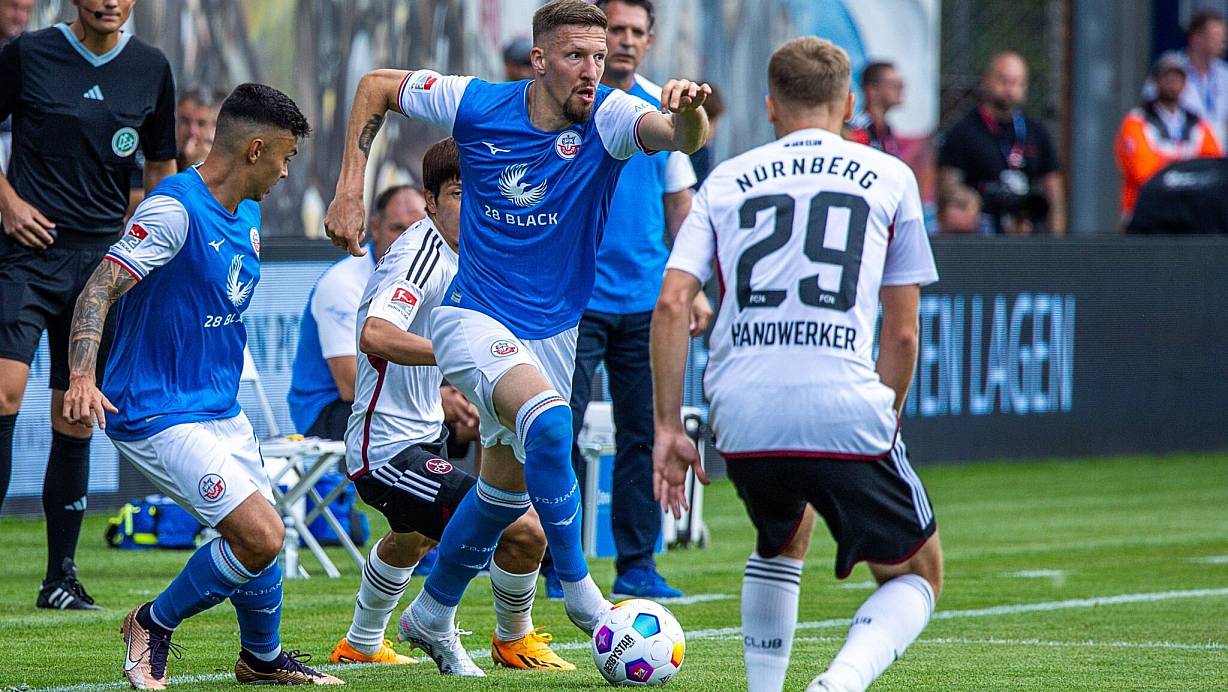 Der Start der Gäste war vielversprechend. Neuzugang Joseph Hungbo war einer der Aktivposten im Spiel der Nürnberger, die dem Führungstor lange Zeit näher waren. Doch wie schon in der Vorsaison fehlte am Ende die Präzision und letzte Konsequenz im Offensivspiel. In der 57. Minute konnten die Rostocker gleich drei Nürnberger Schüsse hintereinander blocken. Ein vermeintlicher Treffer von FCN-Neuzugang Daichi Hayashi (67.) wurde wegen eines Handspiels des Japaners aberkannt.
