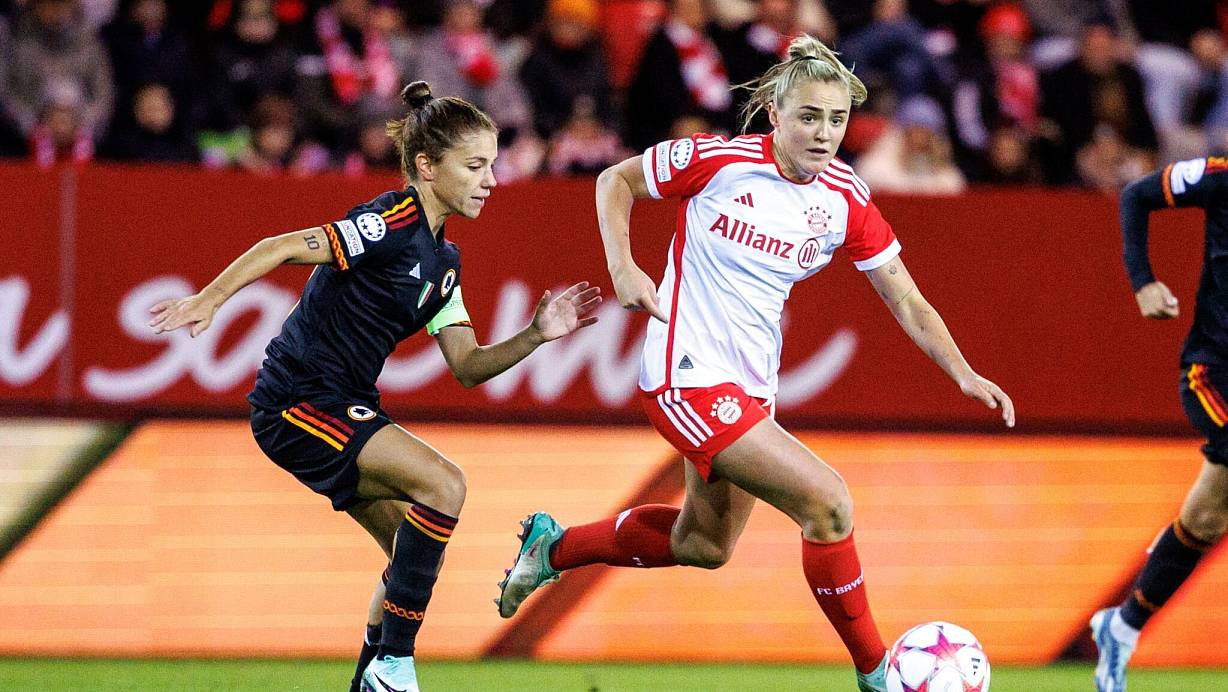 Die Römerinnen, angetrieben von den Ex-Münchnerinnen Saki Kumagai und Laura Feiersinger, hielten gut mit, vergaben zunächst aber auch ihre besseren Möglichkeiten. Das rächte sich. Kurz vor dem Halbzeitpfiff schloss Naschenweng wuchtig ab, der doppelt abgefälschte Ball flog zum 2:0 ins Netz. Als (Eigen-)Torschützin tauchte Roms Innenverteidigerin Linari in den Statistiken auf.