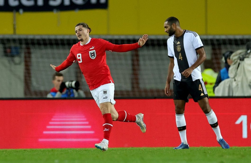 Anders dagegen die Österreicher: Mit langen Bällen stellten sie den EM-Gastgeber immer wieder vor Probleme, wie bei zwei Chancen des Freiburgers Michael Gregoritsch (12. und 17.). Das konnte nicht lange gut gehen. Wieder überbrückten die Österreicher schnell die eigene Hälfte. Sabitzer wurde dabei von Tah nicht konsequent attackiert, sodass der Dortmunder mit einem strammen Schuss links unten einschießen konnte. Rangnick, der Österreich souverän zur EM-Teilnahme geführt hatte und im Spiel gegen sein Heimatland auf acht Bundesliga-Akteure in der Startelf setzte, ballte die Faust.