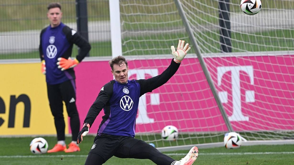 Der Tag hatte für Neuer blendend begonnen. Mit einem Lächeln schritt der Torhüter am Vormittag bei der ersten von zwei Übungseinheiten im Frankfurter Sonnenschein auf den Trainingsplatz der DFB-Akademie. Lässig warf er einen Ball in die Höhe. Deutlich vor seinen Torwartkollegen um den ewigen Rivalen ter Stegen meldete sich der Münchner zur nächsten Übungseinheit für das Frankreich-Duell bereit. Als Nummer eins - auch für die Heim-EM.