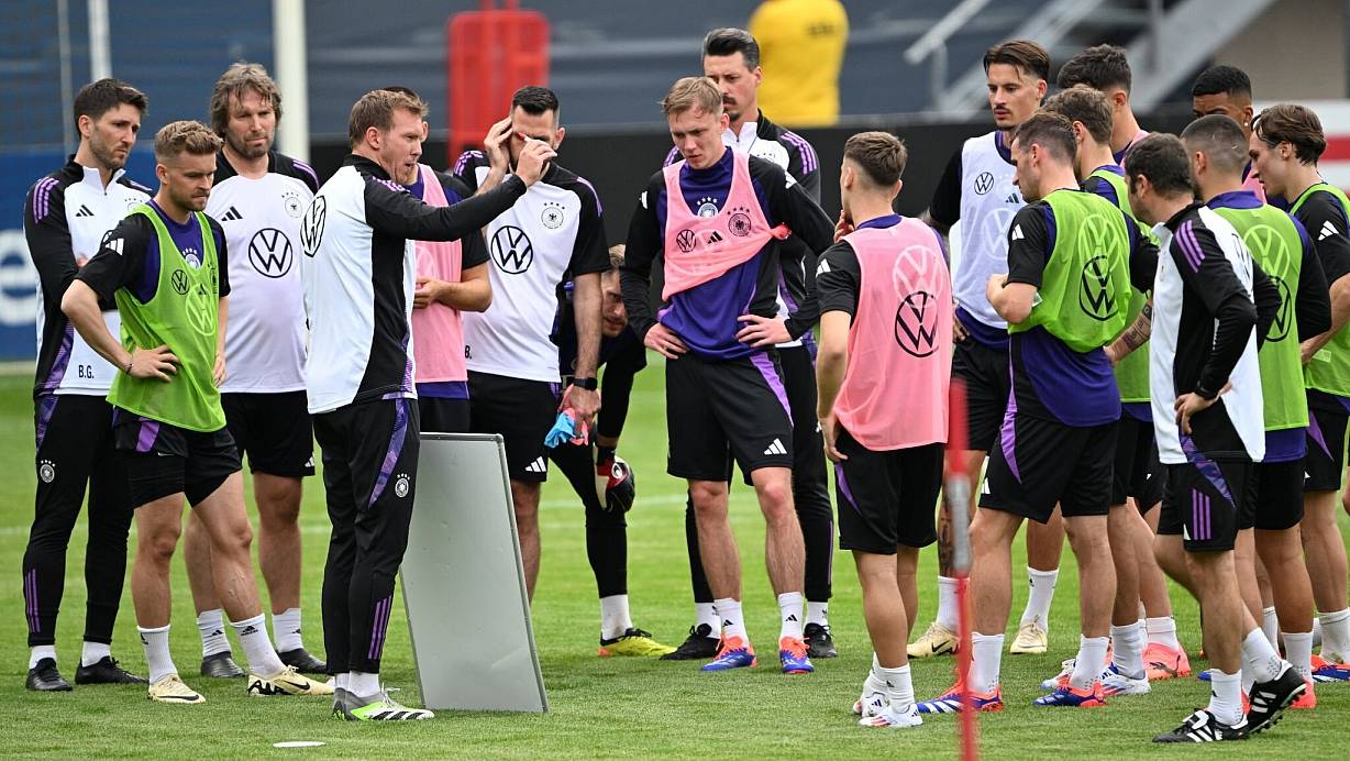 Die angeschlagenen Leroy Sané, Jamal Musiala, Aleksandar Pavlovic und David Raum konnten wie am Vortag beim öffentlichen Training in Jena nicht mit den Kollegen auf dem Platz sein. Mehrere Akteure des insgesamt 27 Spieler umfassenden vorläufigen Aufgebots werden zudem erst in den kommenden Tagen oder der kommenden Woche die Vorbereitung auf die Heim-Europameisterschaft aufnehmen.