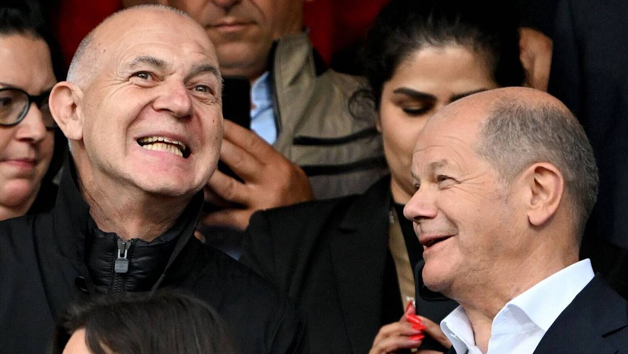 Bundeskanzler Olaf Scholz hat die deutsche Fußball-Nationalmannschaft nach dem torlosen Remis im vorletzten EM-Test gegen die Ukraine in der Kabine besucht. Der SPD-Politiker hatte das 0:0 in Nürnberg auf der Tribüne verfolgt, im Anschluss machte er sich in Begleitung von DFB-Sportdirektor Rudi Völler, DFB-Präsident Bernd Neuendorf und DFB-Geschäftsführer Andreas Rettig auf zur Mannschaft.