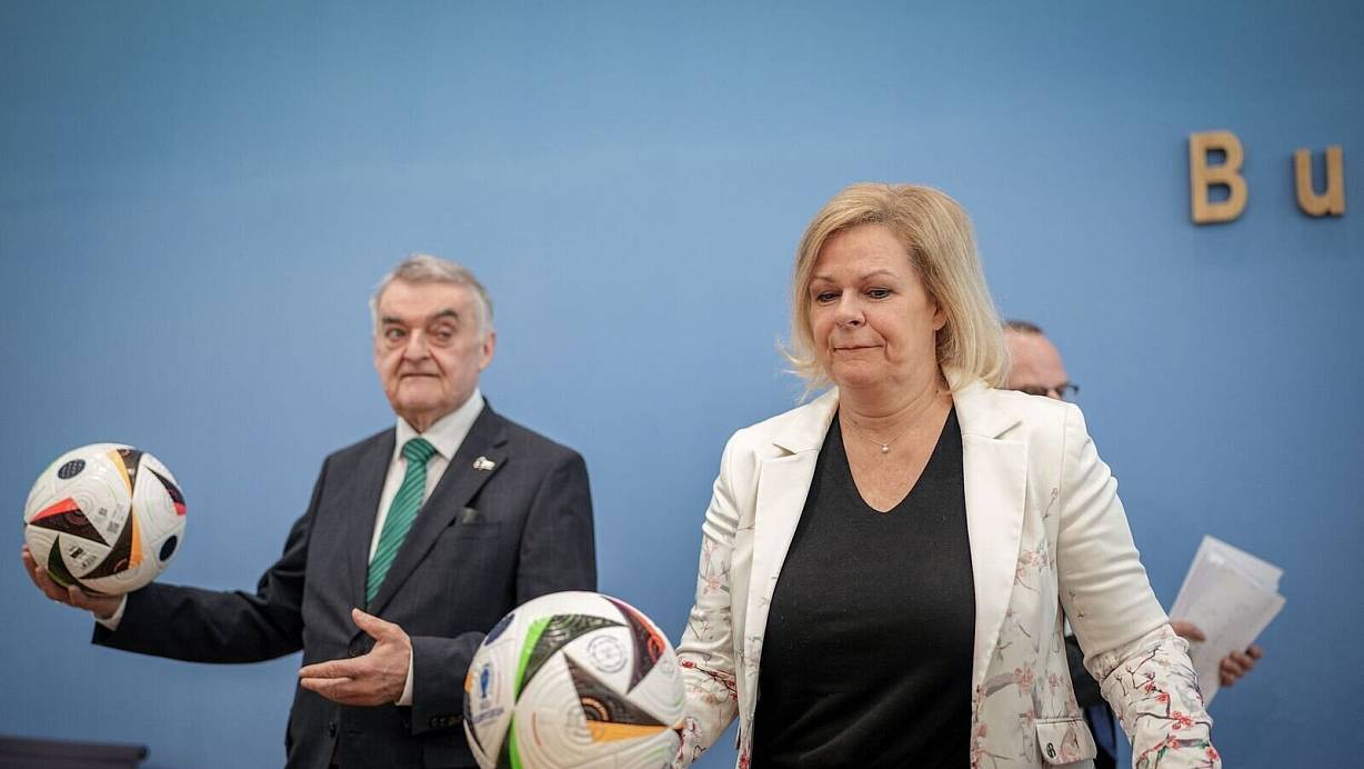 Zehn Tage vor Beginn der Fußball-EM hat Bundesinnenministerin Nancy Faeser dazu aufgerufen, das Turnier als Chance für ein Zusammenrücken zu nutzen. Das sei wichtig, gerade in diesen «Zeiten der äußeren und inneren Bedrohung», sagte die SPD-Politikerin während einer gemeinsamen Pressekonferenz mit dem nordrhein-westfälischen Innenminister Herbert Reul (CDU).