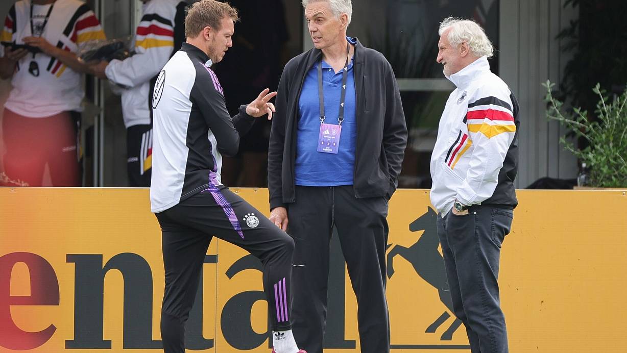 Nagelsmann konnte zwei Tage vor der EM-Generalprobe in Mönchengladbach gegen Griechenland erstmals mit den vier Champions-League-Finalisten Kroos und Rüdiger von Real Madrid sowie Niclas Füllkrug und Nico Schlotterbeck von Borussia Dortmund üben. Beim Teamtraining auf dem Adidas-Gelände in Franken fehlte aus dem vorläufigen EM-Kader nur der Stuttgarter Maximilian Mittelstädt wegen Belastungssteuerung. Trainingsast Brajan Gruda pausierte zudem wegen muskulärer Probleme.