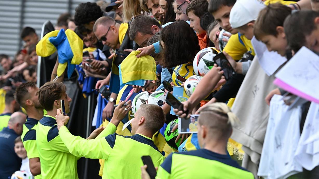 Als Taras Stepanenko nach der Atmosphäre beim öffentlichen Training in Wiesbaden gefragt wird, fangen die Augen des ukrainischen Fußball-Nationalspielers an zu leuchten. «Es ist eine Ehre für uns, hier zu sein», sagt der 34-Jährige von Schachtar Donezk. Seine Euphorie und die der ukrainischen Fans vor dem Auftaktspiel bei der Fußball-EM in Deutschland ist trotz des russischen Angriffskriegs ungebrochen.