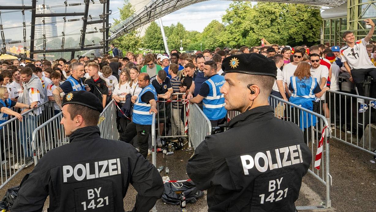 Die Fanzone im Olympiapark bietet etwa 30.000 Menschen Platz. «Trotz der gut gefüllten Fanzone ist die Stimmung bei den Besuchern prächtig», teilte die Polizei wenig später mit. Davon ließen sich auch die Beamten der Einsatzhundertschaft anstecken.