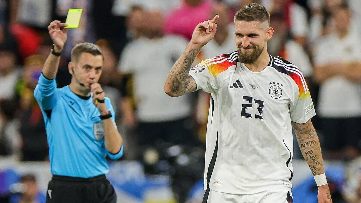 Bei der robusten Spielweise von Robert Andrich war diese Situation im Verlauf der Fußball-Europameisterschaft absehbar. Jetzt ist sie schon vor dem zweiten Gruppenspiel der Nationalmannschaft eingetreten: Der 29 Jahre alte Mittelfeld-Abräumer würde bei einer weiteren Gelben Karte an diesem Mittwoch (18.00 Uhr/ARD und MagentaTV) in Stuttgart gegen Ungarn im letzten Gruppenspiel gegen die Schweiz gesperrt fehlen.