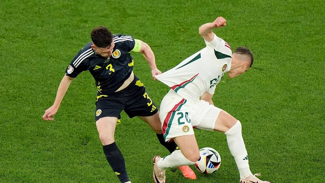 Doch spielerisch ging sehr, sehr wenig auf beiden Seiten. Der argentinische Schiedsrichter Facundo Tello hatte alle Hände voll zu tun, dass die leidenschaftlich geführten Zweikämpfe einigermaßen im Rahmen blieben. Auf Ungarns Seite lief die Partie zunächst an Offensiv-Star und Kapitän Szoboszlai vorbei. Der Ex-Leipziger konnte in der ersten Halbzeit kaum Akzente setzen gegen die defensiv ausgedünnten Schotten.