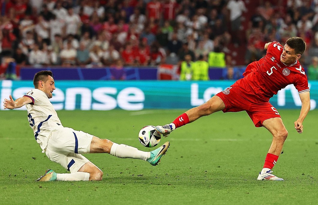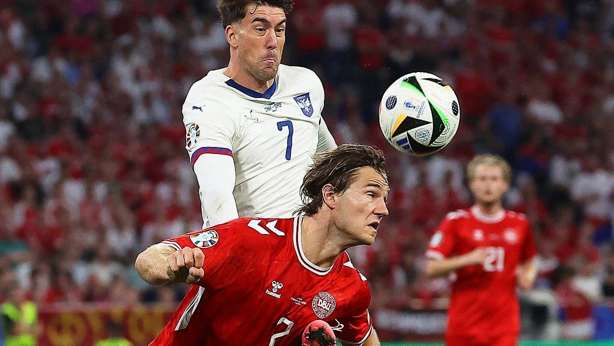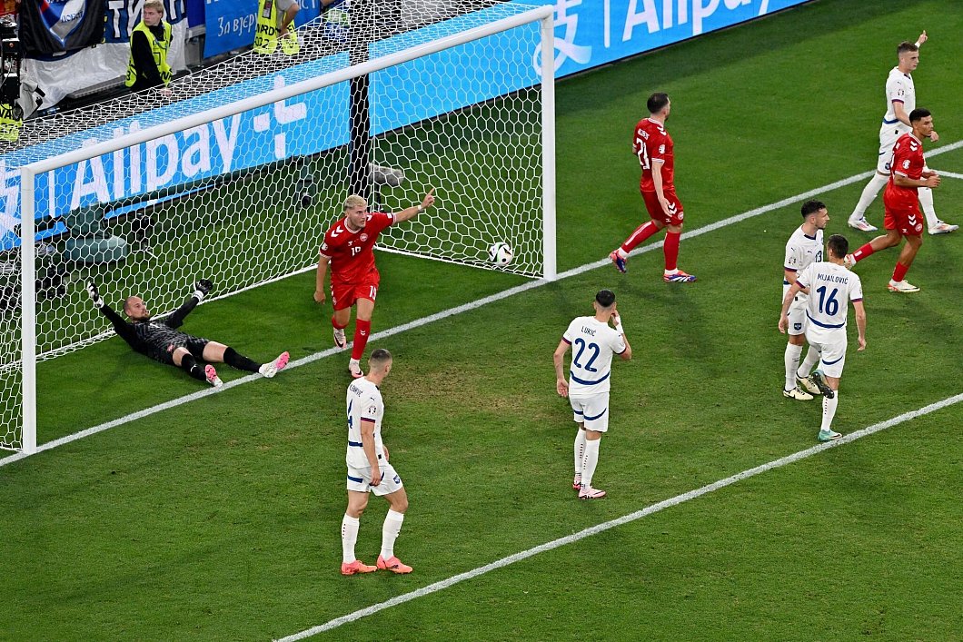 Eriksen (21.), Rasmus Højlund (32.) und dem Wolfsburger Bundesliga-Profi Jonas Wind (39.) fehlten aus der Distanz Präzision oder Durchschlagskraft. Einmal lag der Ball nach einer überraschenden Eckball-Variante zusammen mit Stürmer Wind und dem gut beschäftigten Serben-Keeper Predrag Rajkovic im Tor - doch Eriksens Hereingabe war zuvor im Aus.