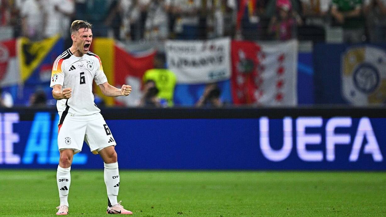 Joshua Kimmich hat bei einem großen Turnier endlich mal wieder Spaß. Der ehrgeizige Bayern-Profi, der bei den drei Murks-Turnieren von 2018 bis 2022 als Anführer einer neuen Spielergeneration stets ein Gesicht des deutschen Misserfolgs war, steht mit der Fußball-Nationalmannschaft im EM-Achtelfinale gegen Dänemark.