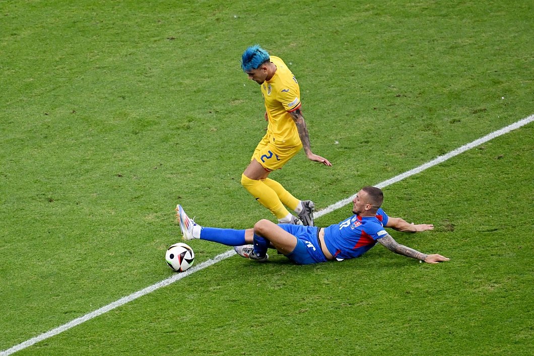Nach dem Gegentor wirkten die Rumänen zunächst ein wenig geschockt. In der 34. Minute holte der slowakische Abwehrspieler David Hancko an der Strafraumkante Hagi von den Beinen. Der deutsche Schiedsrichter Daniel Siebert entschied zunächst auf Freistoß. Nach Überprüfung durch den Videoassistenten zeigte der 40-Jährige dann auf den Elfmeterpunkt - eine strittige Entscheidung. «Es ist eine Ermessensentscheidung», sagte Sieberts Kollege Patrick Ittrich bei MagentaTV. Den Strafstoß verwandelte Marin sicher.