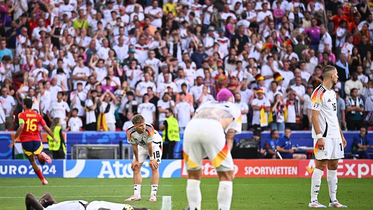 Was für ein Drama, was für eine Energieleistung, was für eine bittere Enttäuschung. Die EM-Party ist nach 120 Minuten voller Leidenschaft und Fußball-Wahnsinn vorbei. Spaniens Übermacht hat den schwarz-rot-goldenen Sommerspaß brachial beendet. Der Traum vom vierten EM-Titel ist nach drei beschwingten Wochen mit Torfesten und Gute-Laune-Spielen zwei Schritte vor dem Finale zu früh vorüber.