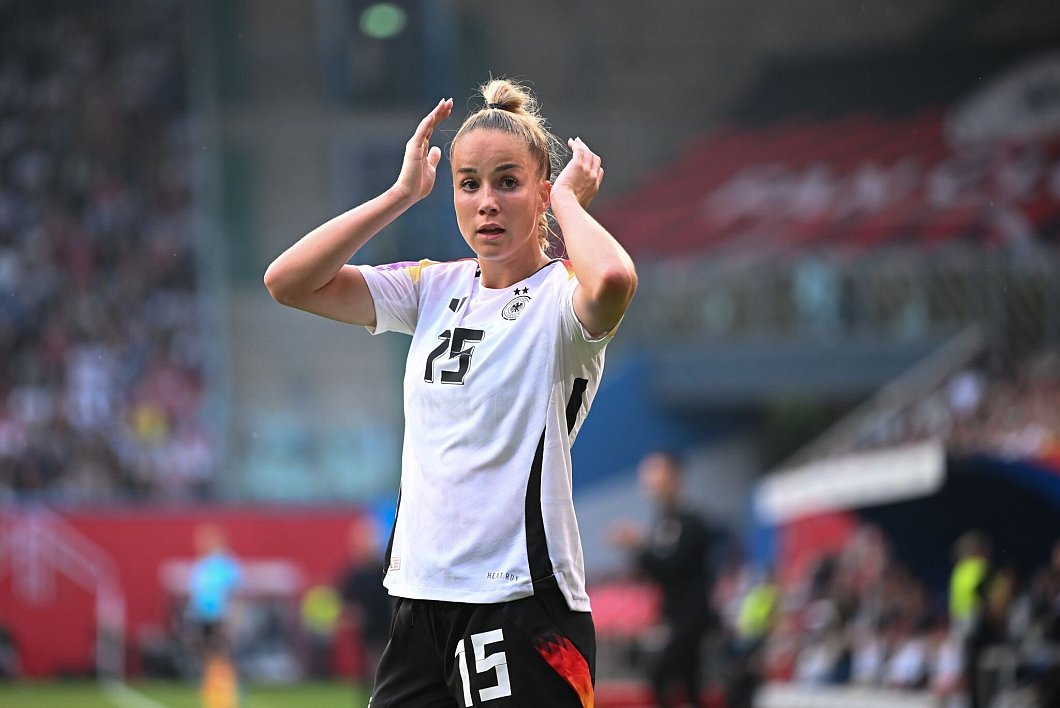 «Mein Papa hat die Idee, einen Deutschland-Anzug anzuziehen. Ich hoffe, dass meine Mama da noch interveniert», sagte die Abwehrspielerin vor der Auftaktpartie der DFB-Frauen gegen Australien am Donnerstag (19.00 Uhr/ZDF und Eurosport). «Ich bin mega stolz, dass sie solche Fans sind.»