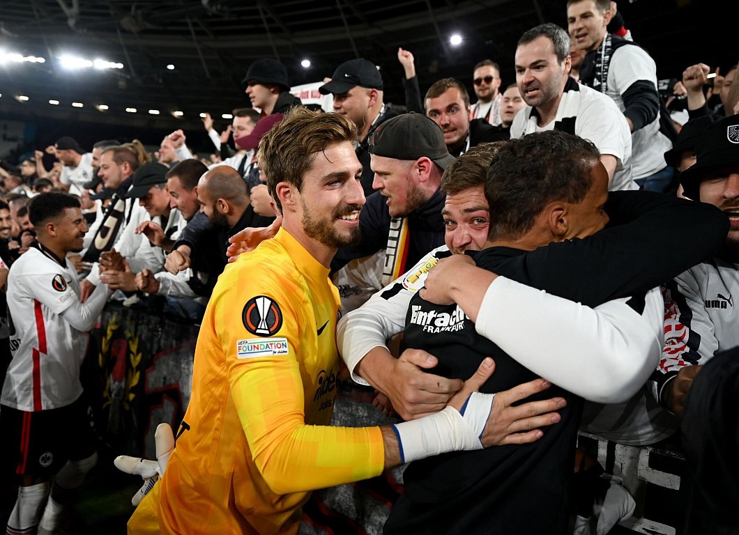 Vor drei Jahren legten die Hessen mit einem 2:1-Erfolg bei West Ham im Halbfinal-Hinspiel den Grundstein für den Finaleinzug - knapp drei Wochen später war der Triumph in Sevilla perfekt. 2025 findet das Endspiel am 21. Mai erneut in Spanien statt - diesmal in Bilbao.