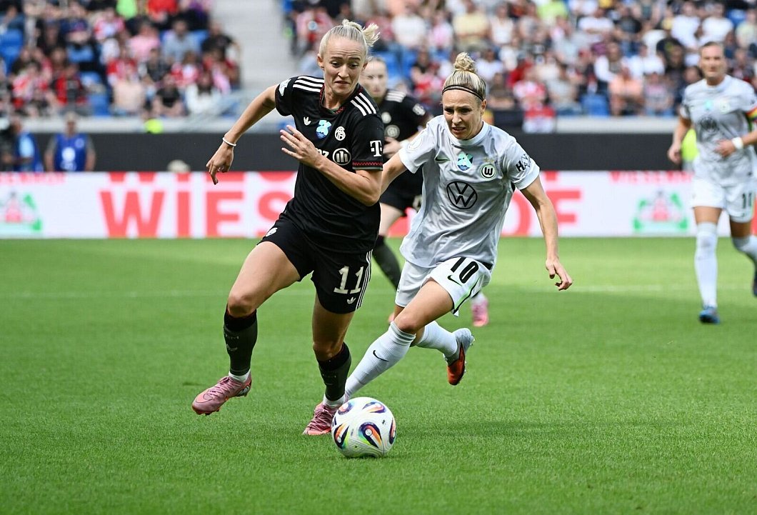 Auch ohne einige Stars dominierte der Meister und DFB-Pokalsieger größtenteils die Partie. Englands Europameisterin Stanway besaß in der 10. Minute die erste Chance, scheiterte aber aus kurzer Distanz an VfL-Torhüterin Stina Johannes. Sehenswert dann das 1:0: Abwehrchefin Eriksson zog aus 17 Metern wuchtig ab, der Ball flog unhaltbar ins linke obere Eck. Beim 2:0 schüttelte Damnjanovic ihre Bewacherin Joelle Wedemeyer ab und drosch den Ball humorlos unters Tordach.