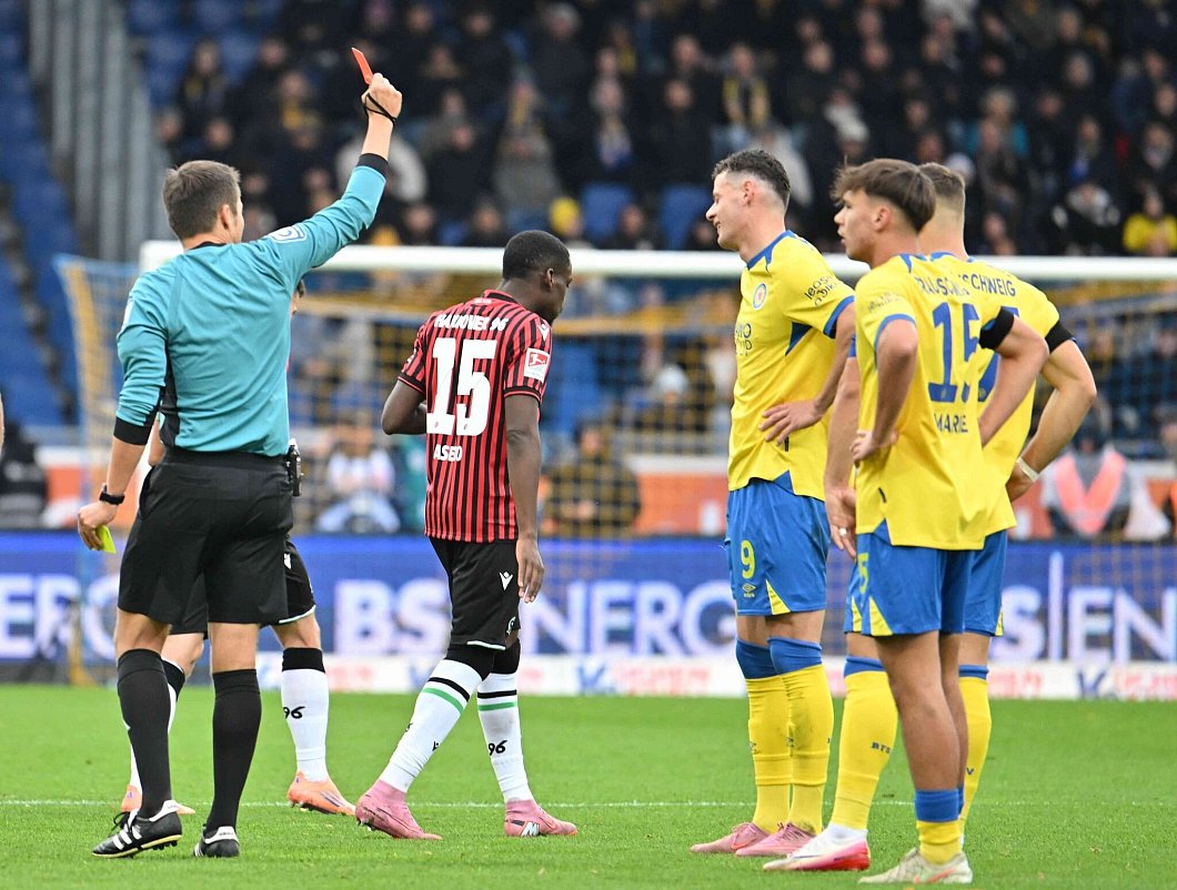 Der 23 Jahre alte Stürmer hatte seinem Gegenspieler Boris Tomiak am Sonntag mit beiden Händen an den Hals gefasst und dafür schon in der 20. Minute beim Stand von 0:0 die Rote Karte gesehen. In Unterzahl verloren die Braunschweiger am Ende mit 0:3 (0:2) gegen den Erzrivalen. Eintracht-Trainer Heiner Backhaus kündigte schon kurz nach dem Spiel eine Geldstrafe für den Leihspieler von der TSG 1899 Hoffenheim an.
