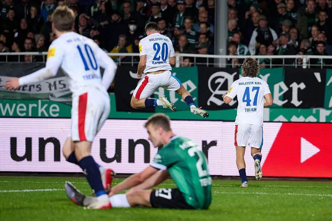 Mit einem großen Kraftakt hat Preußen Münster seine Negativserie in der 2. Fußball-Bundesliga beendet und Holstein Kiel nach vier Spielen wieder eine Niederlage zugefügt. Drei Tage nach dem Einzug ins Pokal-Achtelfinale gab der Bundesliga-Absteiger die Partie am Freitagabend nach einer 1:0-Führung noch aus der Hand und verlor vor 10.491 Zuschauern im Preußenstadion mit 1:2 (1:0).