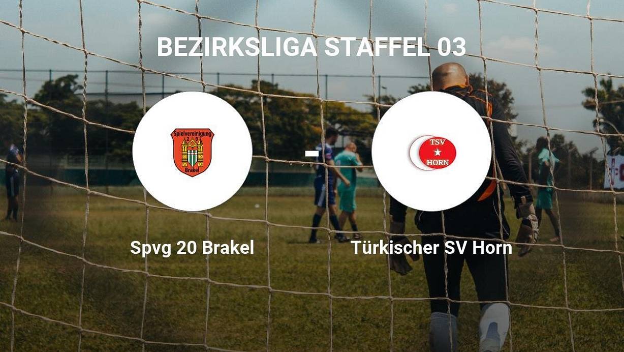 Spvg 20 Brakel: Raphael Reinold (8), Anes Fekovic (3), Sebastian Mann (1), Luca Orth (15), Zymer Schroller (20), Christopher Benedict Kleine (2), Andre Schmitt (7), Leo Ulrich (13), Gino Leandro Humpert (14), Kenric Nitzsche (9), Tarik Cimen (11)SV Horn: Alihan Birinci (10), Kaan Koc (3), (1), Muhammed Özdemir (19), Fynn Luca Vollmer (7), Boris Hyacinte Kemadjou Djeunou (9), Kevin Towa Kuate (14), Rafet Özdemir (23), Milan Radovanovic (8), Cristian Gabriel Lopez Otalvaro (12), Tolga Pulat (18)