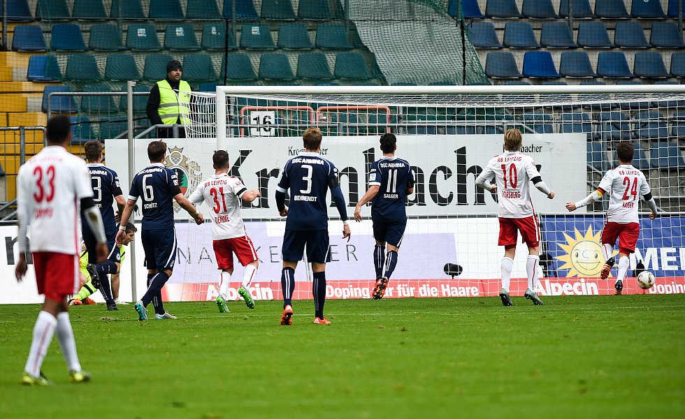 Vor 18.664 Zuschauern war die Arminia zunächst die bessere Mannschaft, blieb in der Offensive aber ohne Durchschlagskraft. Leipzig agierte effektiv, Davie Selke (40. Minute) nutzte die erste große Torchance zur Führung. Im zweiten Abschnitt kontrollierte Leipzig die Partie. Bielefeld mühte sich vergeblich, den Ausgleich zu erzielen.
