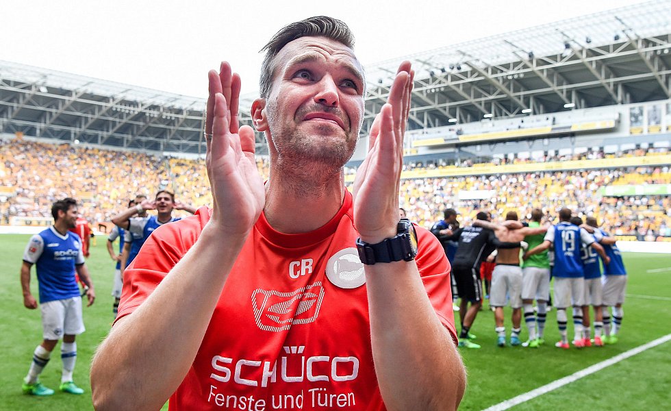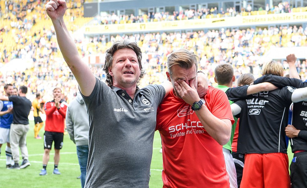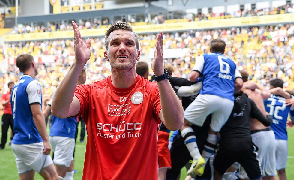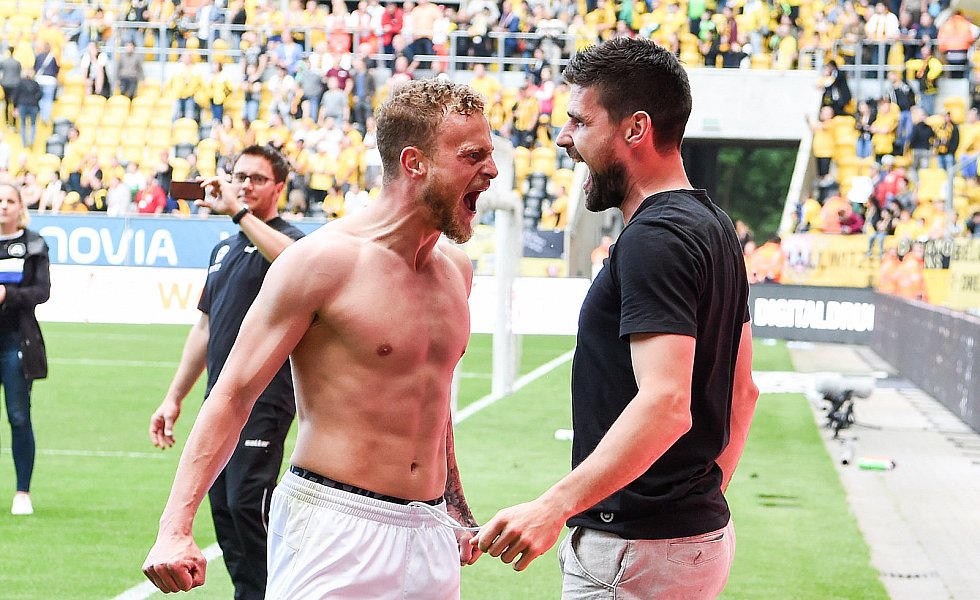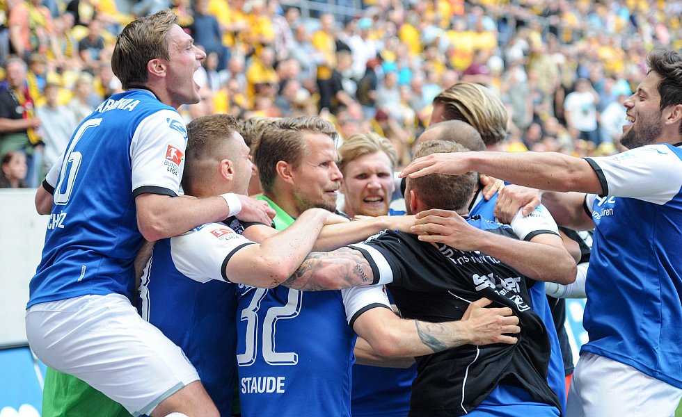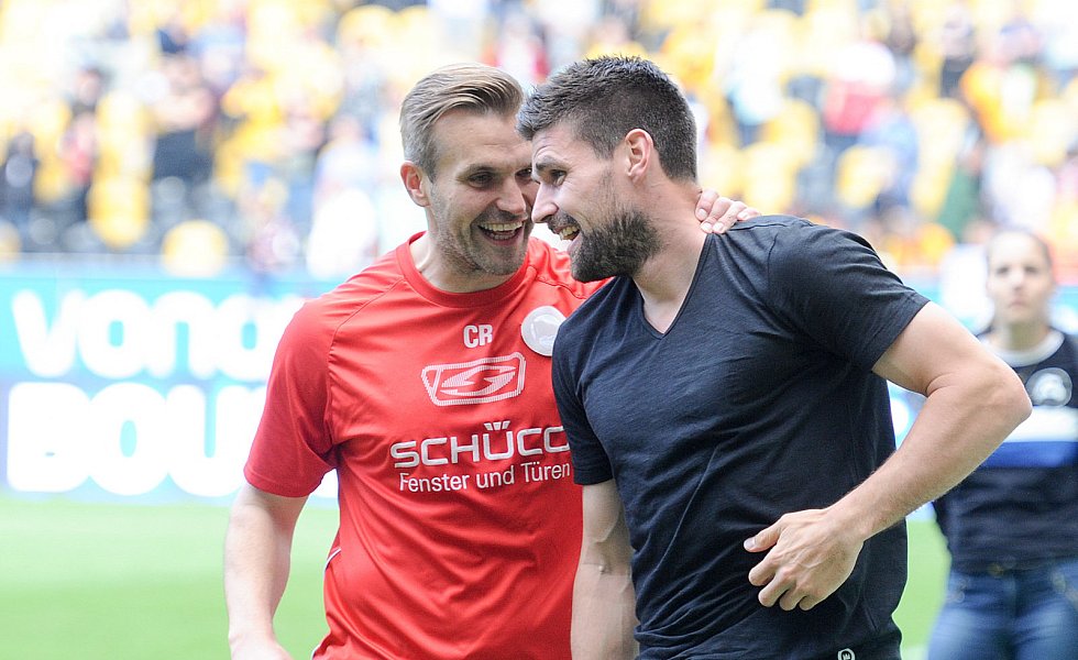 Nach 84 Minuten musste dann mal wieder ein Standard herhalten: Julian Börner sorgte per Kopf nach einem Schütz-Freistoß für den mittlerweile verdienten Ausgleich, nachdem Dresdens Abseitsfalle misslang. Dennoch benötigten die Arminen nach wie vor einen Sieg, da 1860 München parallel in Heidenheim mit 0:1 in Front lag. Dynamo-Keeper Wiegels lenkte einen Putaro-Schuss drei Minuten vor Ablauf der regulären Spielzeit um den Pfosten, ehe alle Arminen die frohe Kunde aus Heidenheim erreichen sollte:
