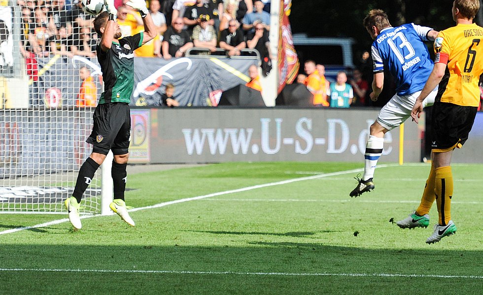 Dynamo setzte auf Konter, der DSC drückte auf den Ausgleich, den Yabo mit seinem Distanzschuss aus gut 30 Metern zunächst noch knapp verpassen sollte. Kurz darauf hatten die Arminen großes Glück, dass die Sachsen die Vorentscheidung verpassten: Berko lief alleine auf Keeper Hesl zu, legte quer auf dem mitgelaufenen Heise, der über das halbleere Tor schoss.