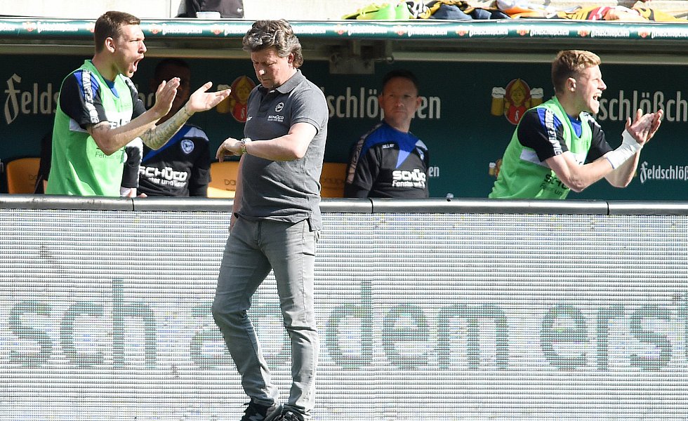 In der 67. Minute scheiterten Börner und Voglsammer im Doppelpack an Dynamo-Keeper Wiegels. Die Sorgenfalten auf Seiten der Bielefelder wurden größer. Nichtsdestotrotz hatte der Gegentreffer die Saibene-Elf aufgeweckt, die nun viel engagierter zu Werke ging und ihr gewohntes Pressing-Spiel durchdrückte. Saibene brachte in der Folge Klos für Hemlein, Putaro für Staude und Brandy für Voglsammer. Trotz des konsequenten Anlaufens der Arminen versuchten sich die Dresdner stets aus der eigenen Hälfte zu kombinieren und brachten sich somit selbst in Bedrängnis.