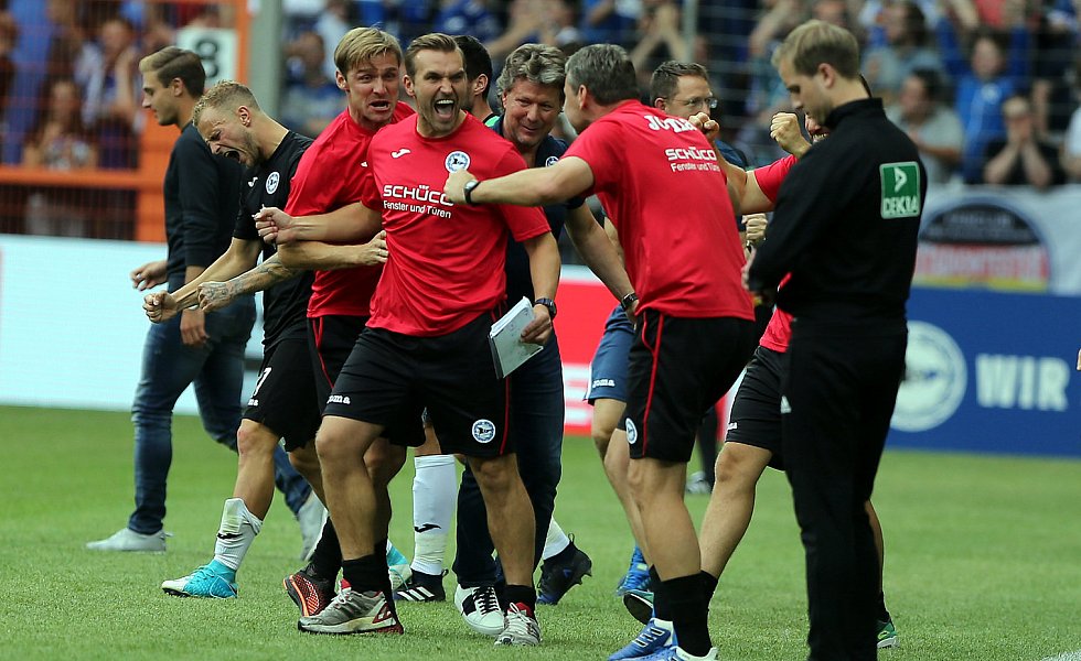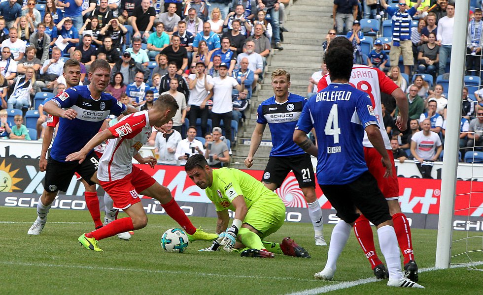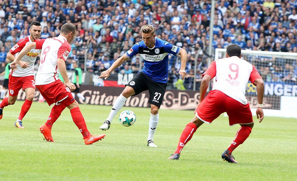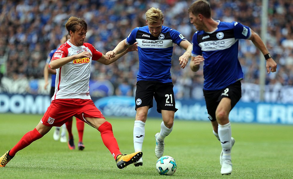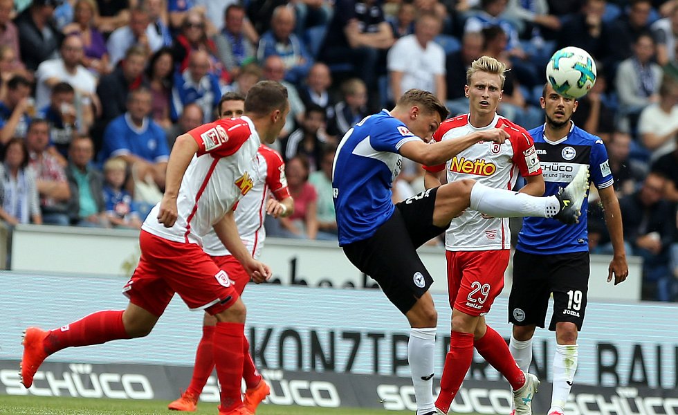 Arminia Bielefeld gewinnt zwar mit einer gehörigen Portion Glück, aber dennoch verdient zum Auftakt der Saison 2017/18 mit 2:1 gegen Aufsteiger Jahn Regensburg. Zumindest über Nacht können die Arminen jetzt von der Tabellenspitze grüßen.